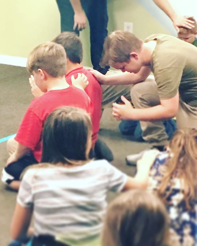 Held up by the arms of the father,